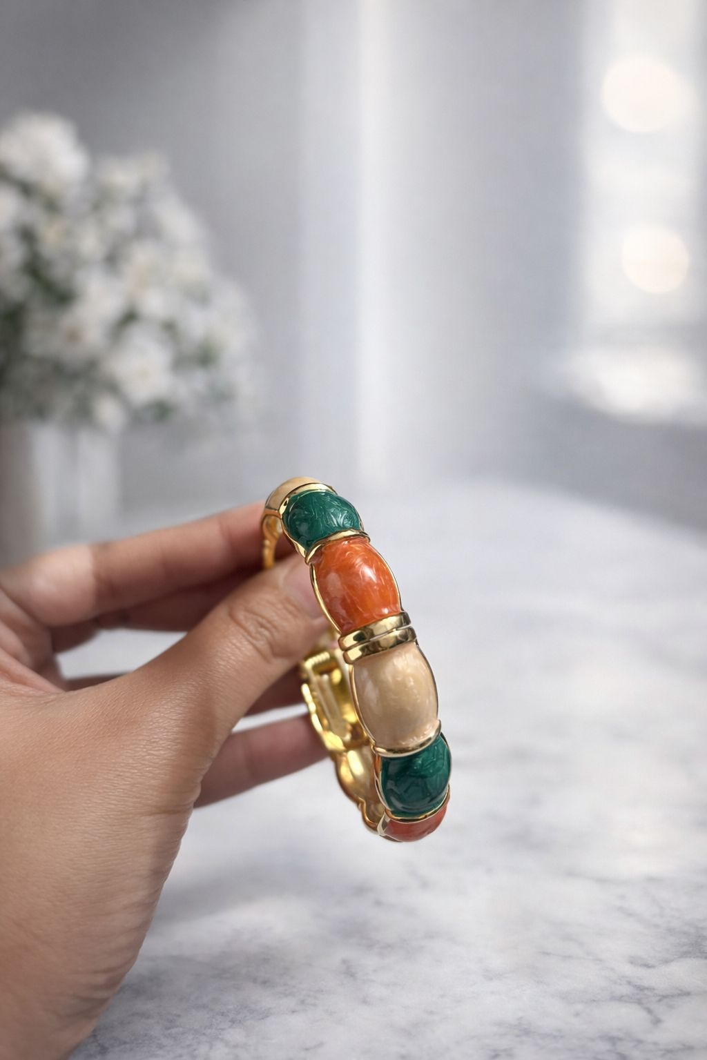 Earthy Luxe Enamel Gold Bangle