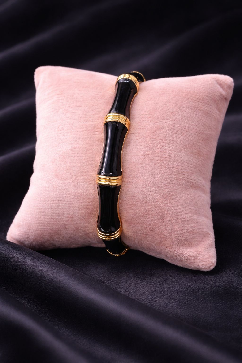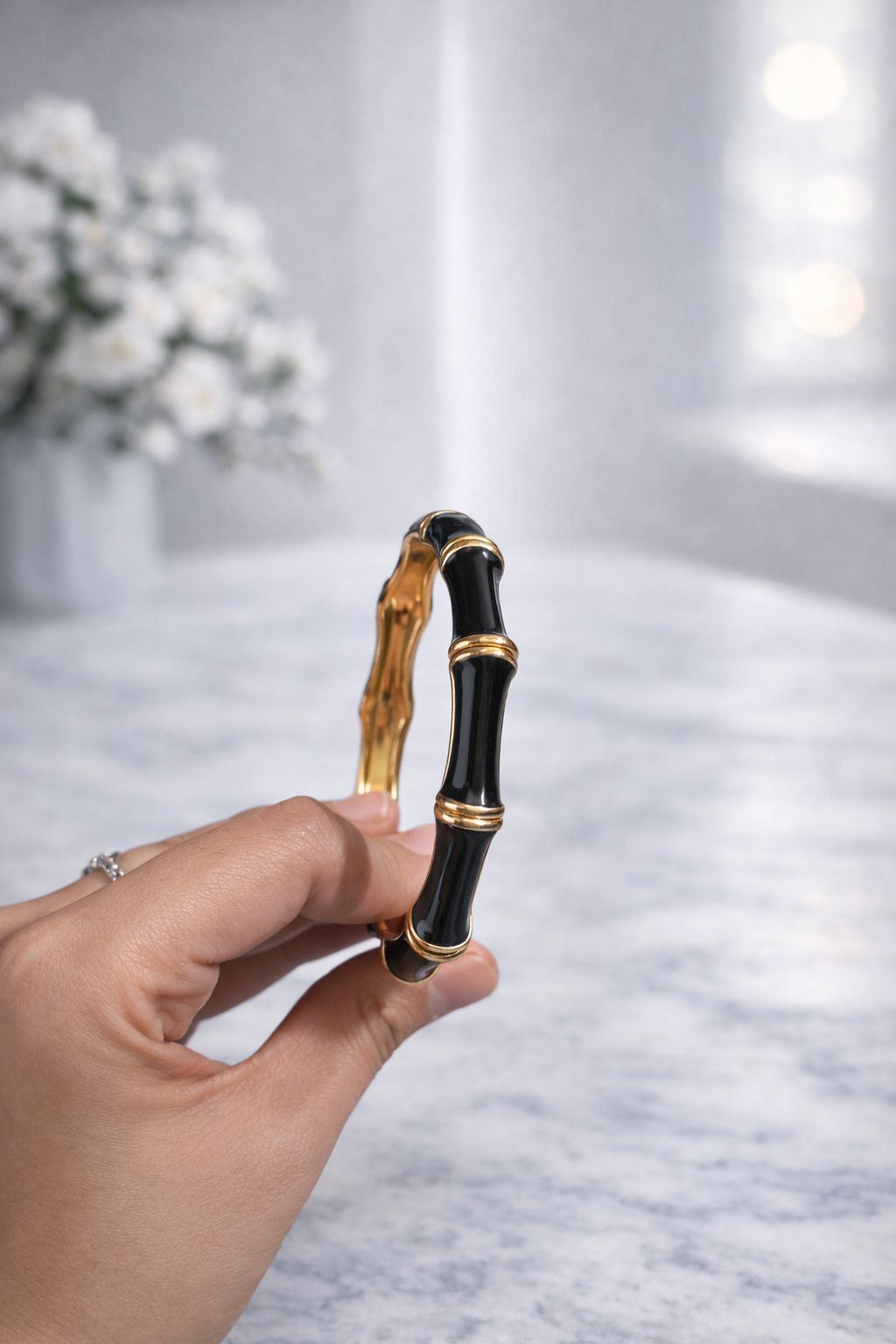 Midnight Luxe Bamboo Enamel Gold Bracelet