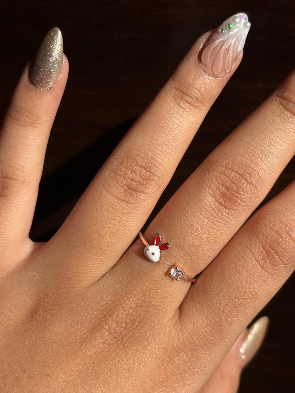 Golden Bunny Crystal Adjustable Ring