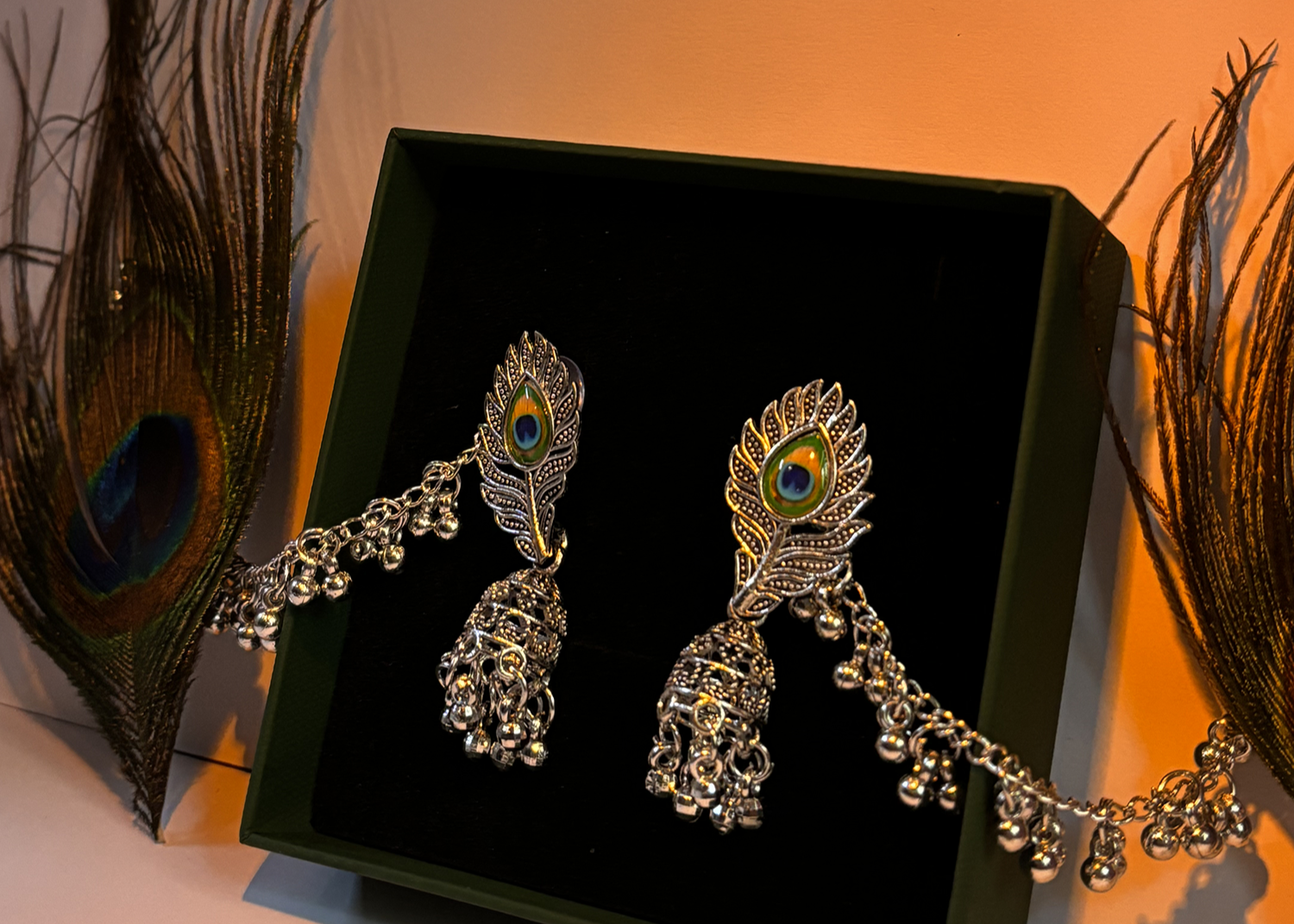 Peacock Chandbali Oxidized Silver Jhumka Earrings