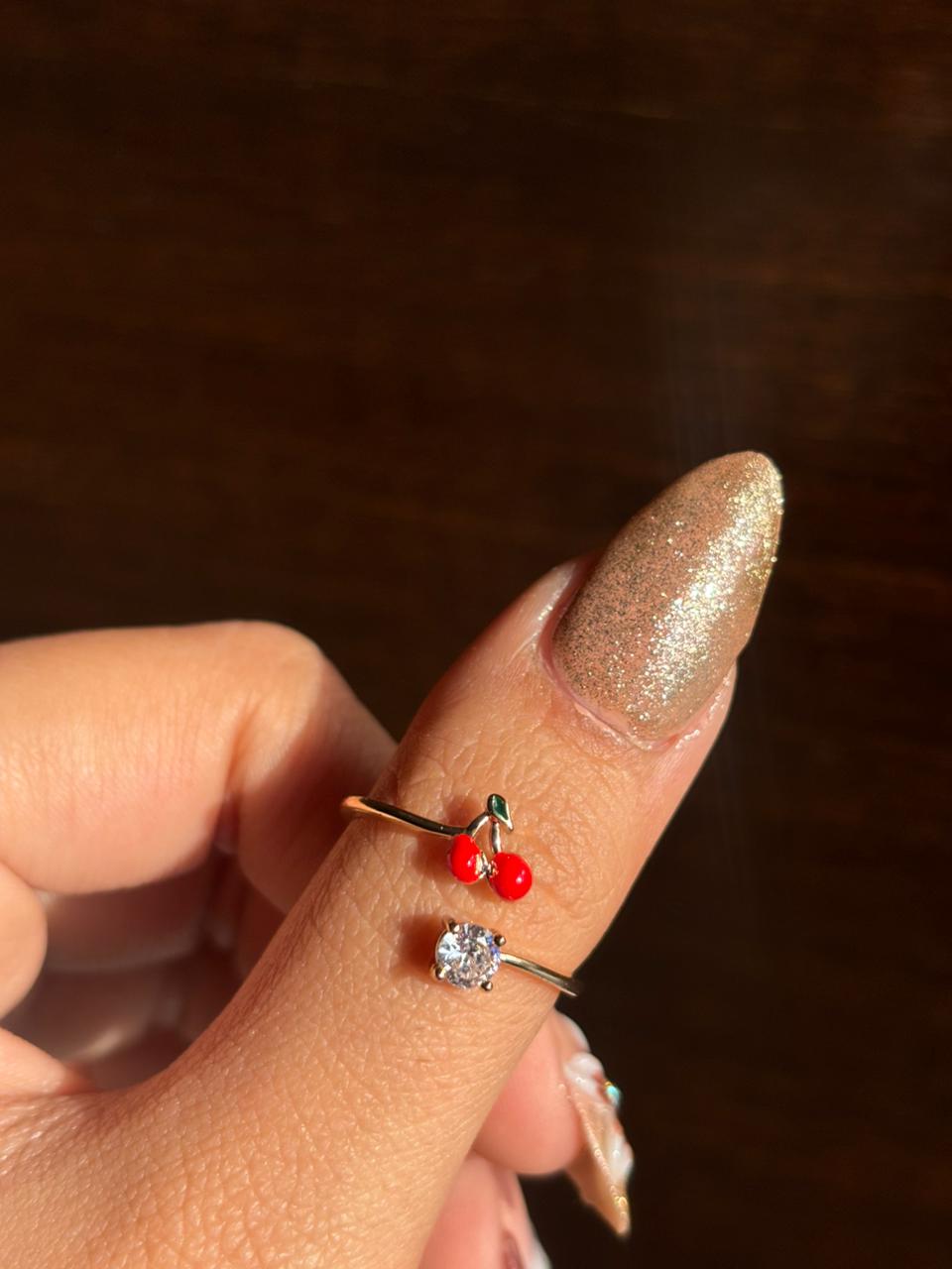 Red Cherry Crystal Adjustable Ring